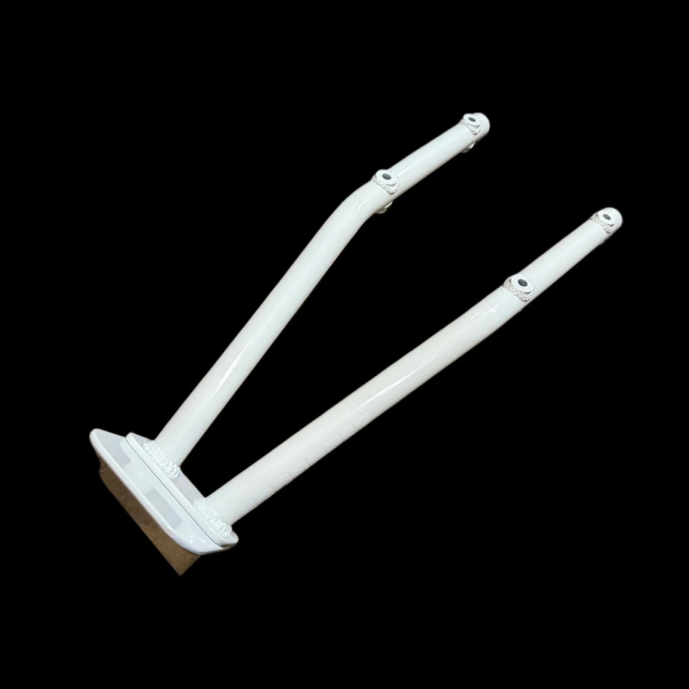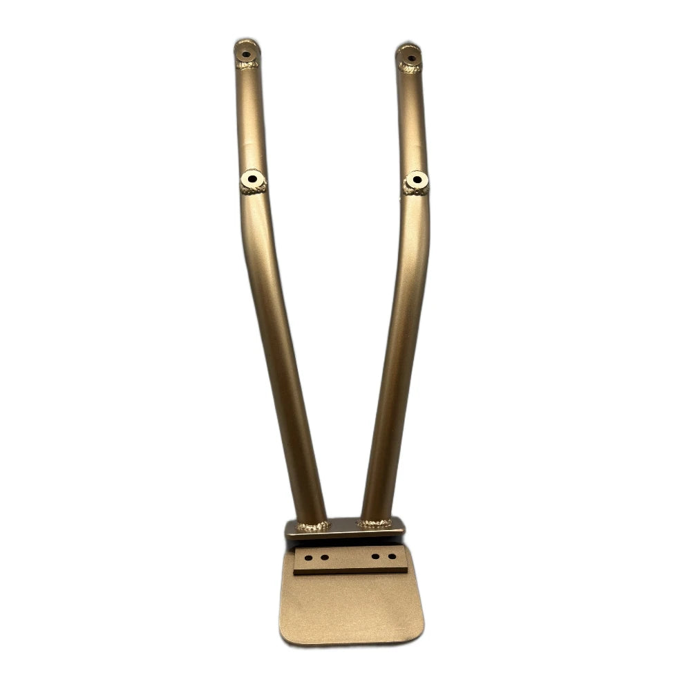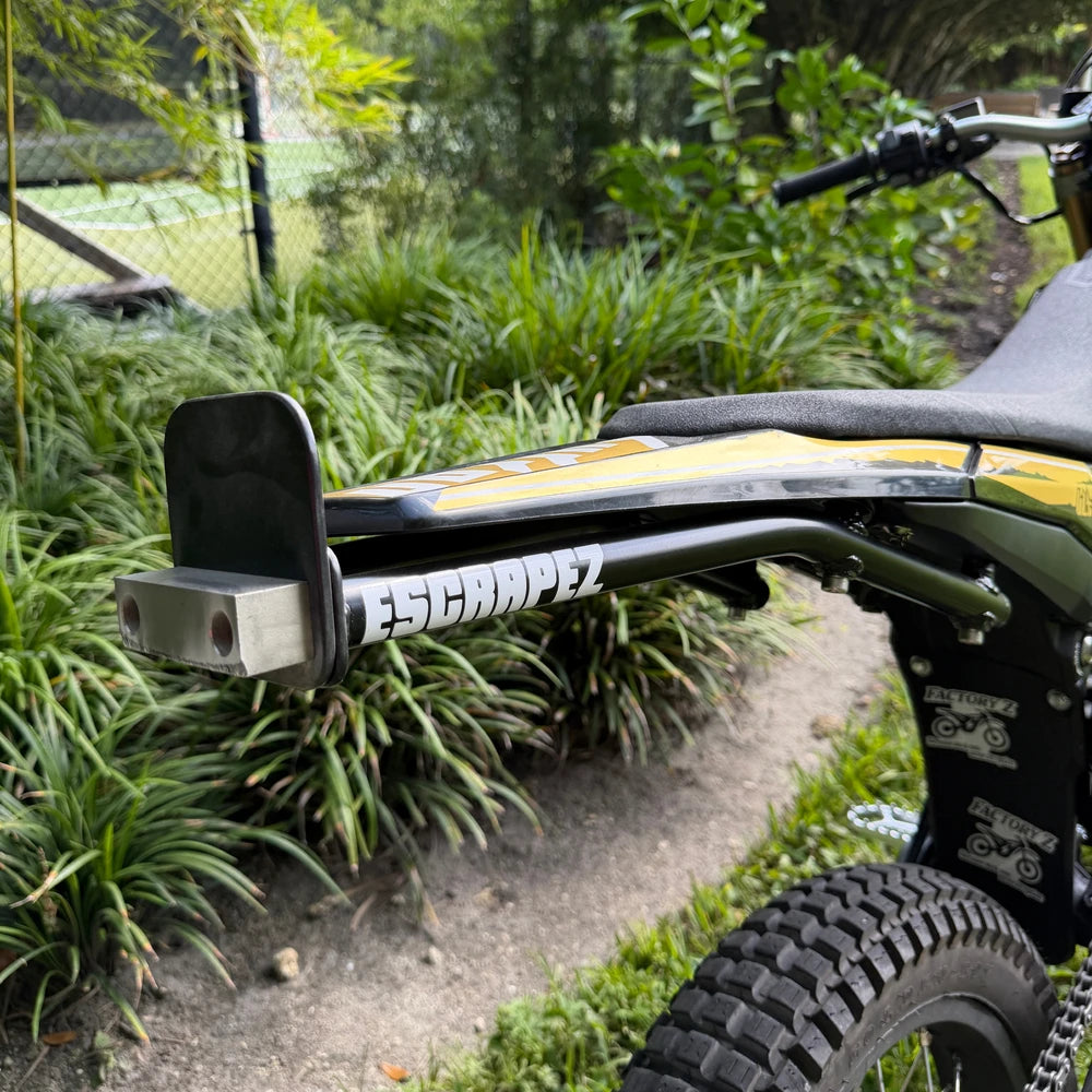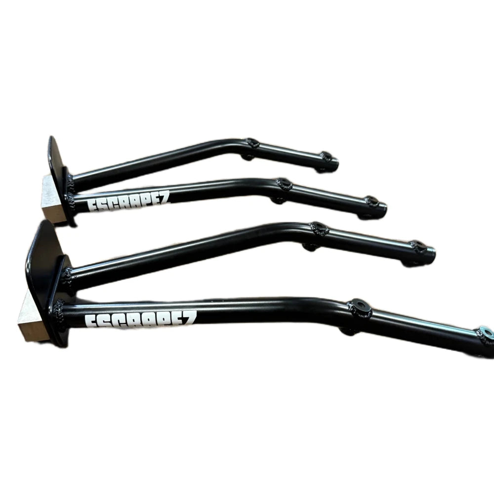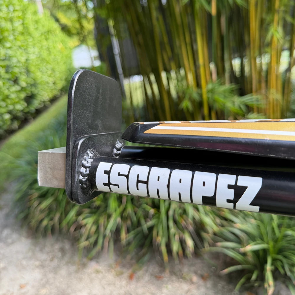 Each 12 bar is hand made in the USA by Escrapez. Made from 1 inch Steel tubing to withstand scraping and stay light weight. The foot plate can be removed with 2 bolts to suite everyone's style of riding. The titanium scrape block is replaceable by removing the 2 bolts on the bottom of the stunt bar.
